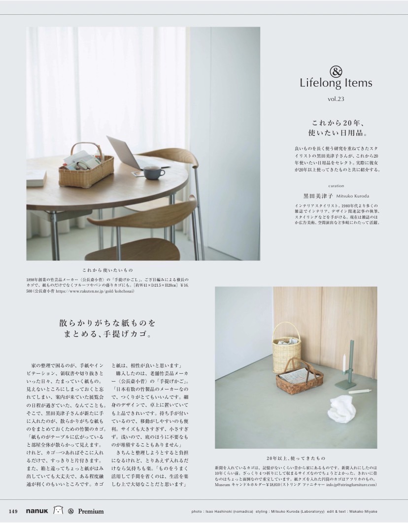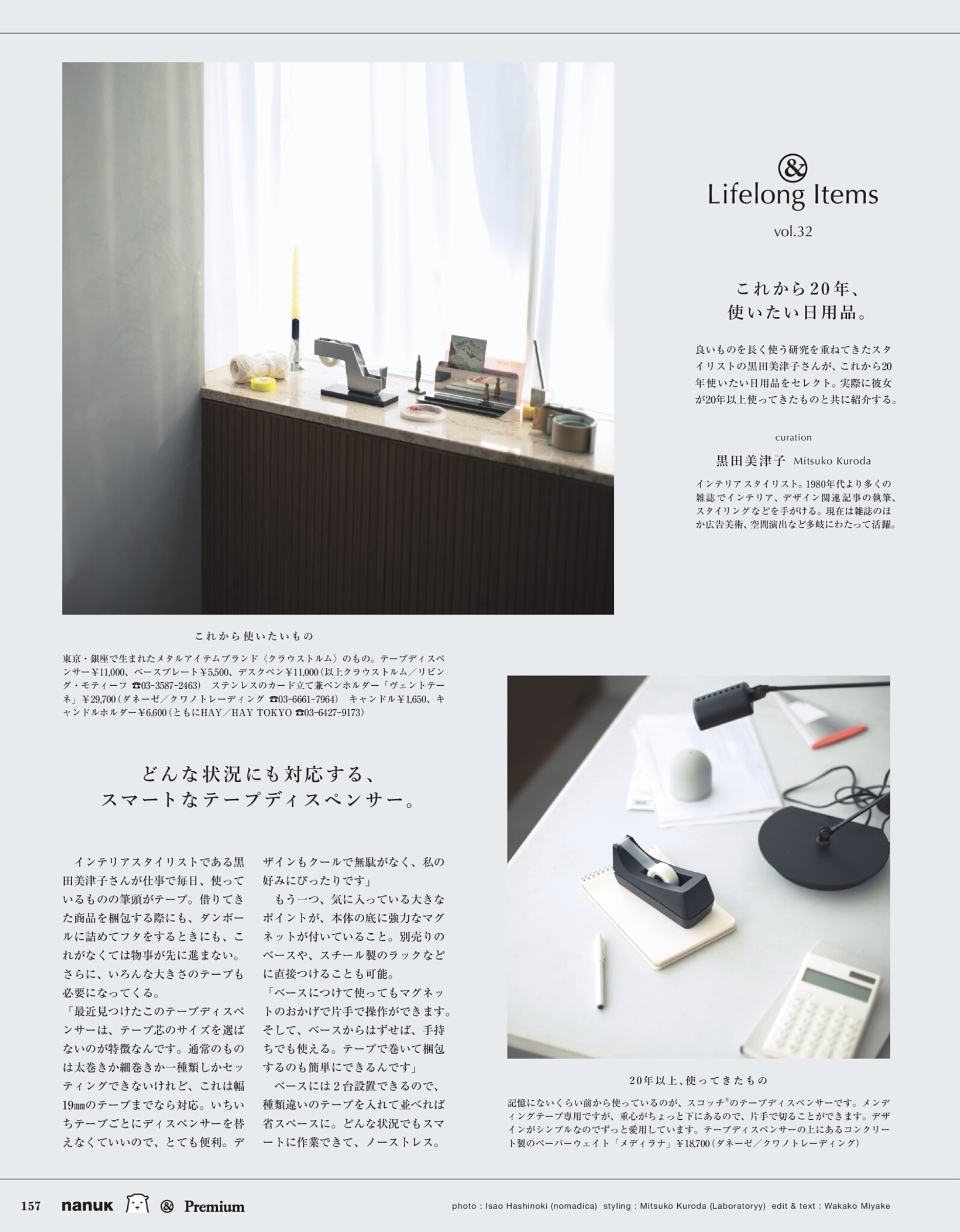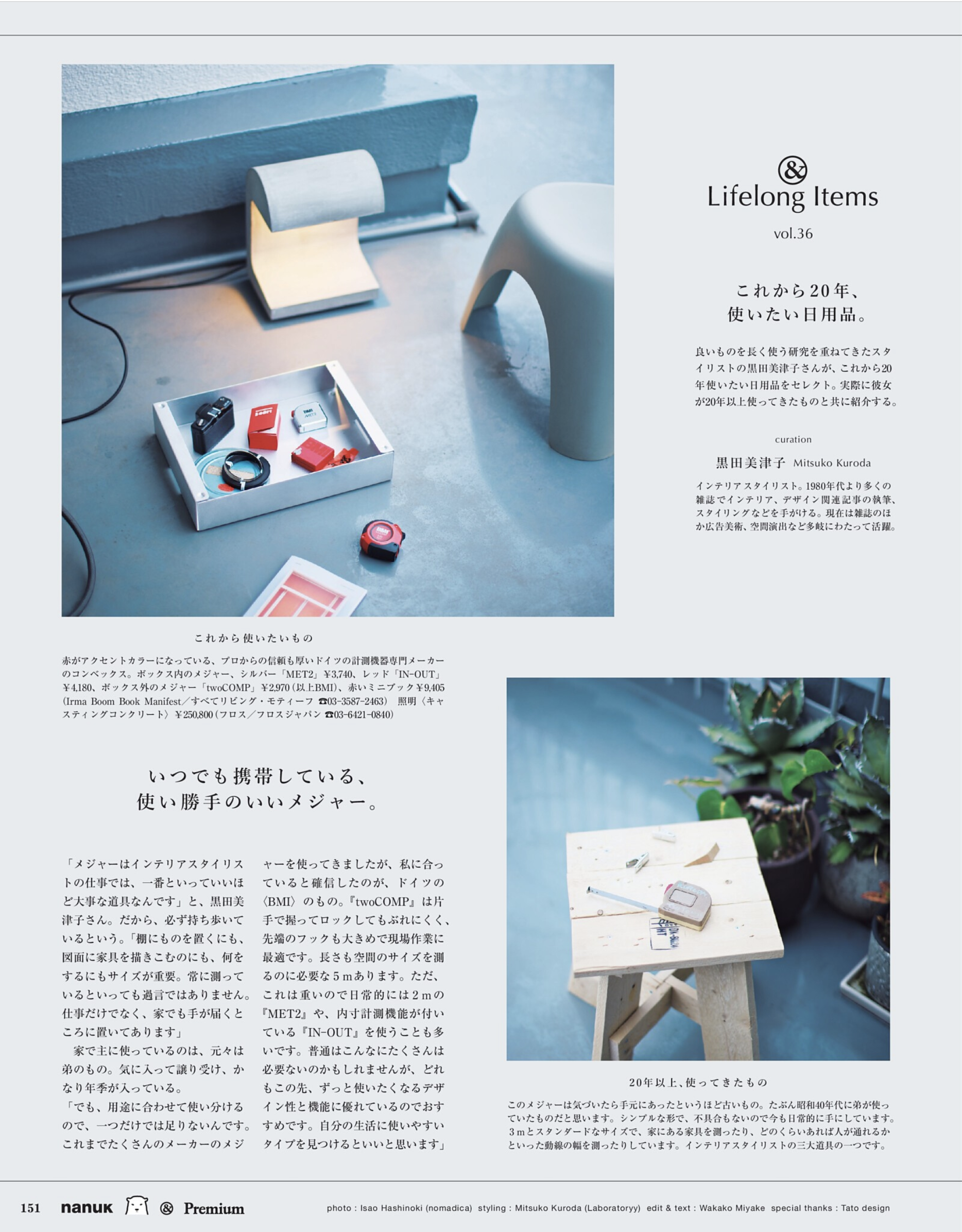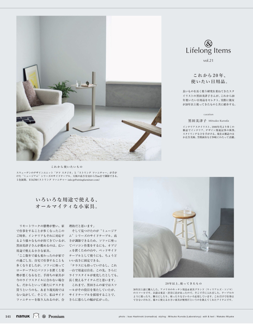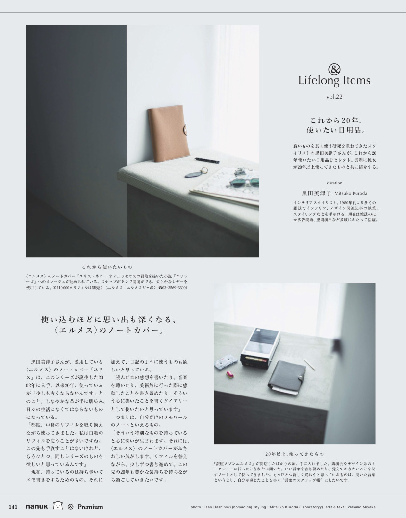 黒田がこれまで10~20年使ってきた私物と、これから20年使い続けたい現行品を撮り下ろしにて紹介する連載ページ。