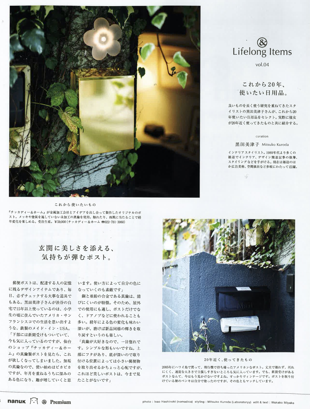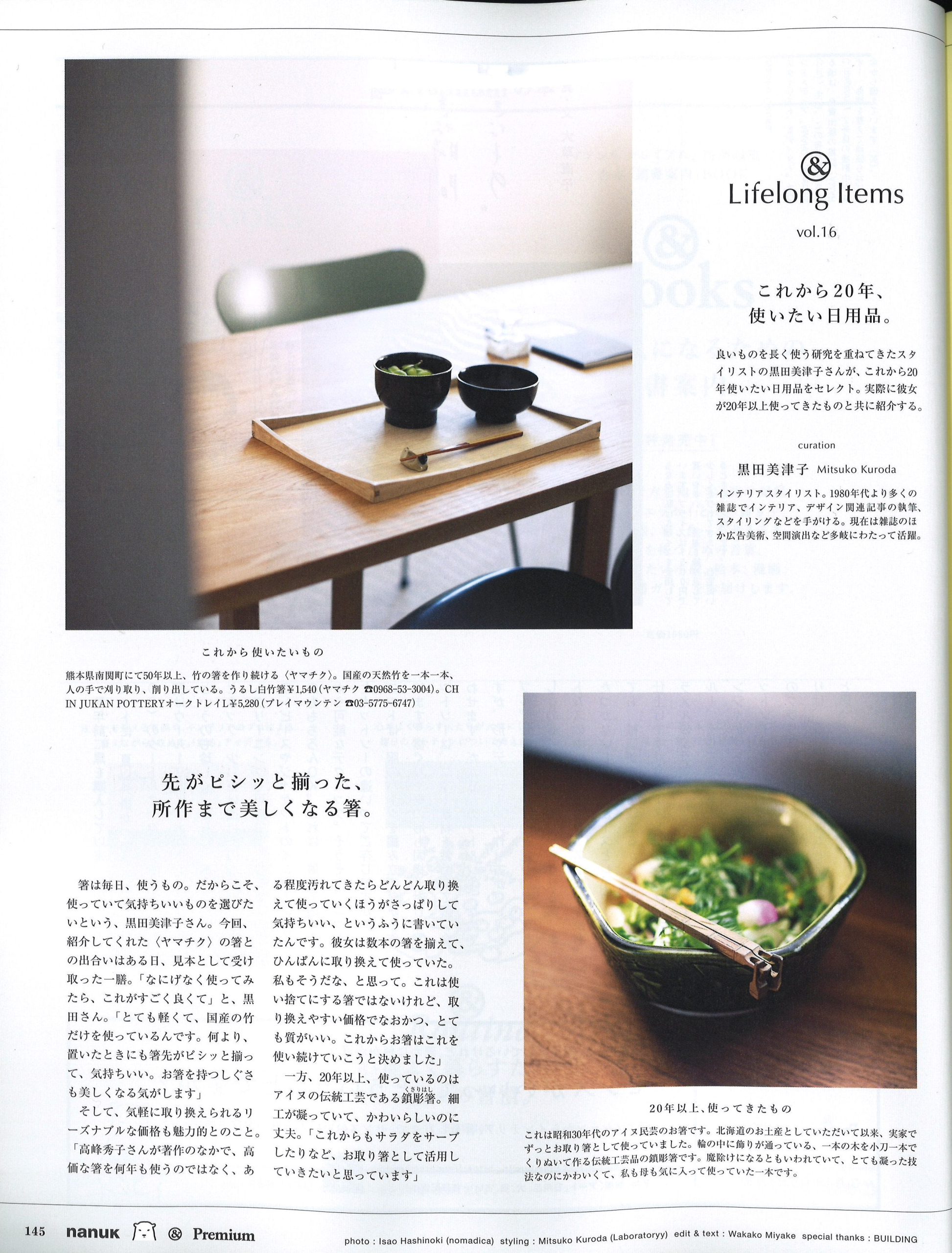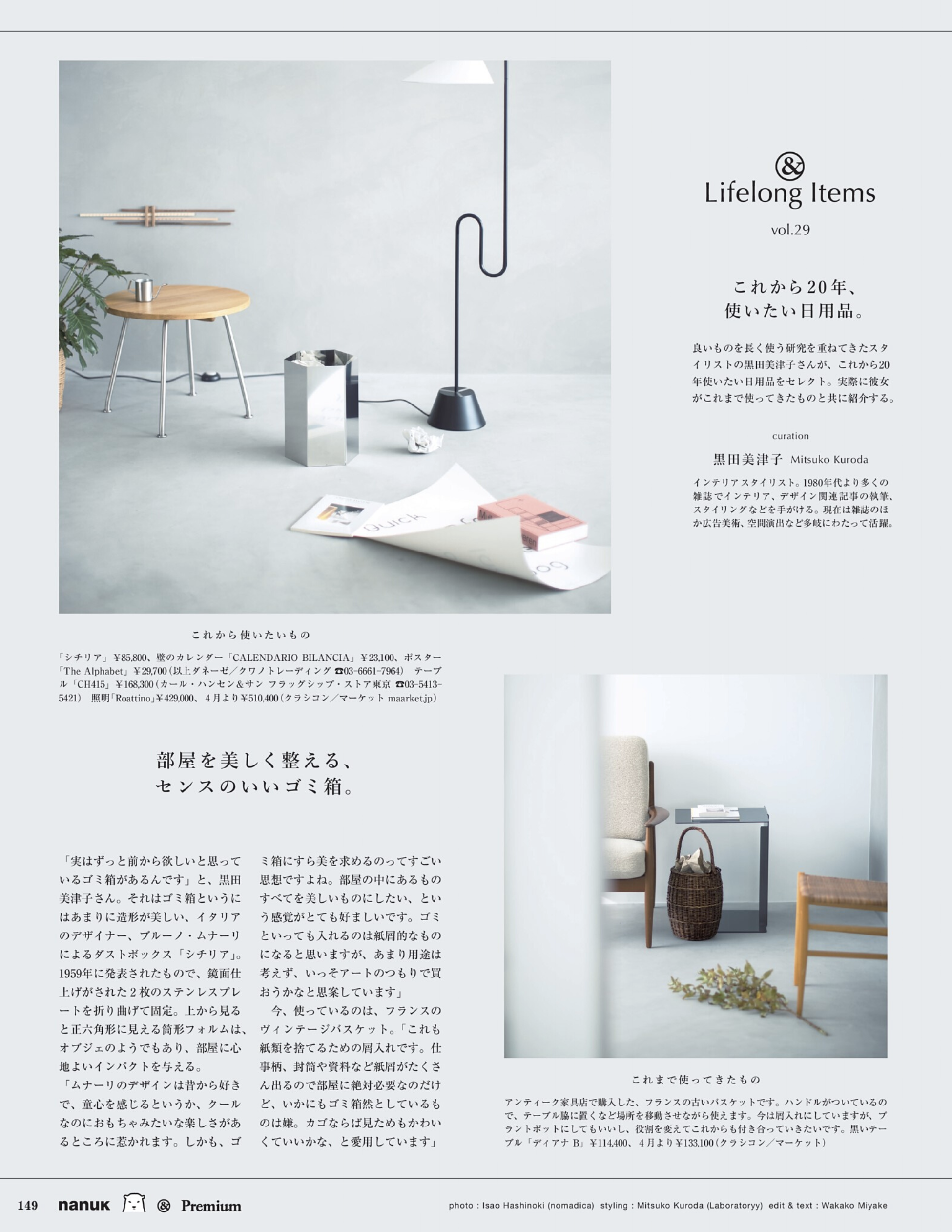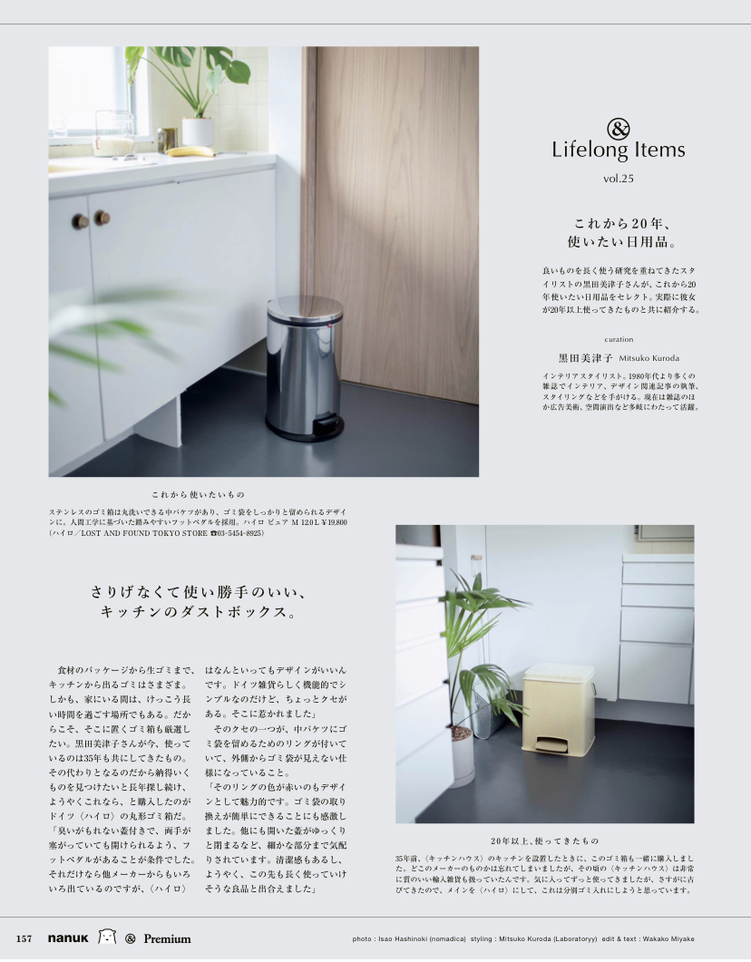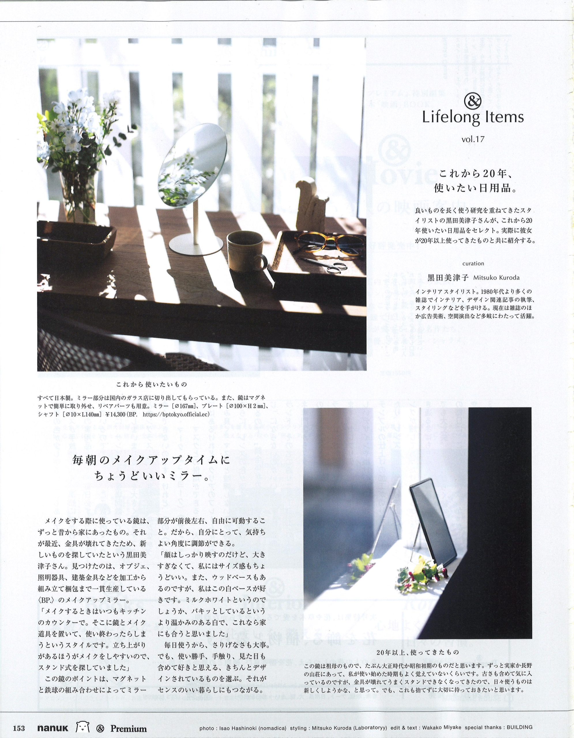 黒田がこれまで10~20年使ってきた私物と、これから20年使い続けたい現行品を撮り下ろしにて紹介する連載ページ。