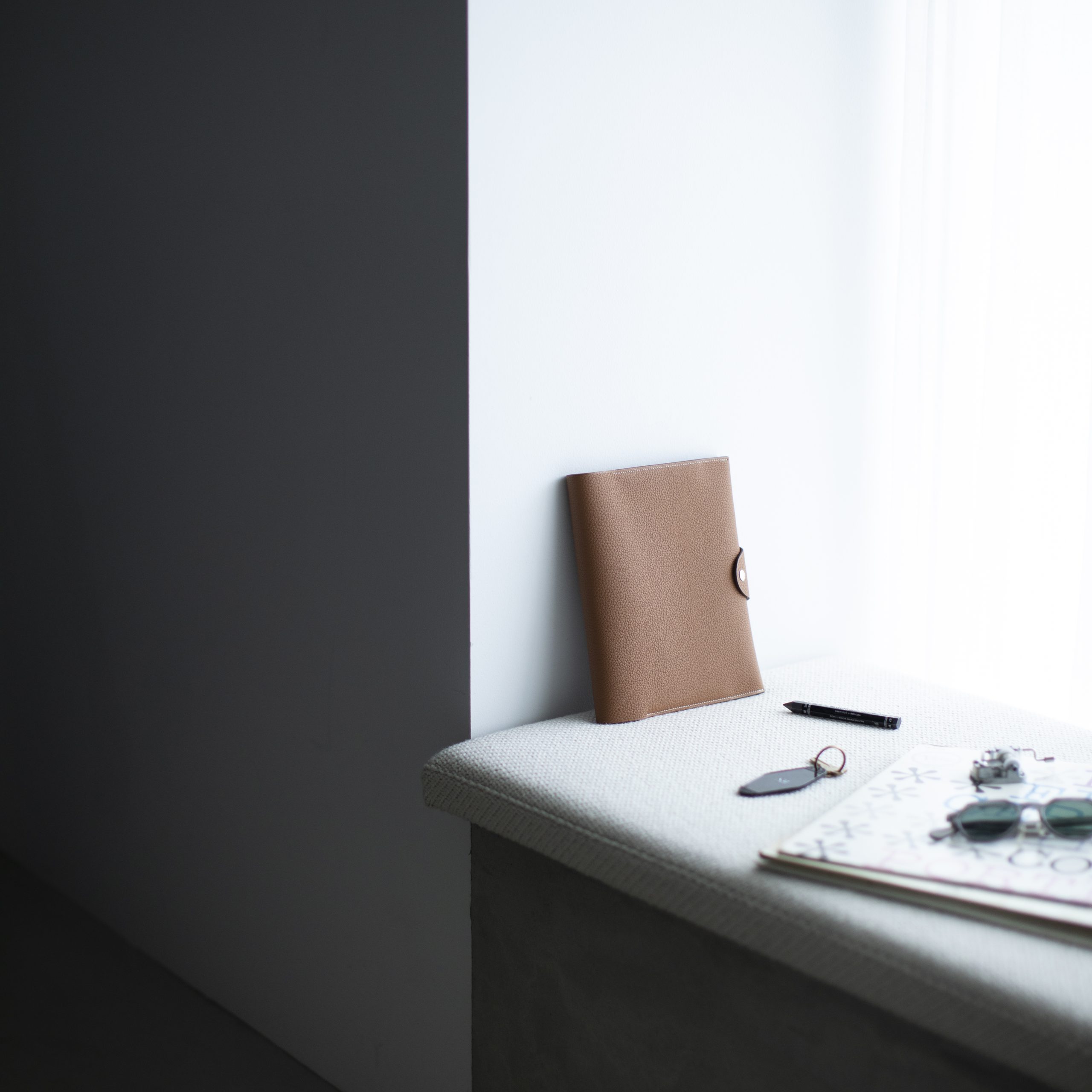 〈使い込むほどに思い出も深くなる、「エルメス」のノートカバー。〉