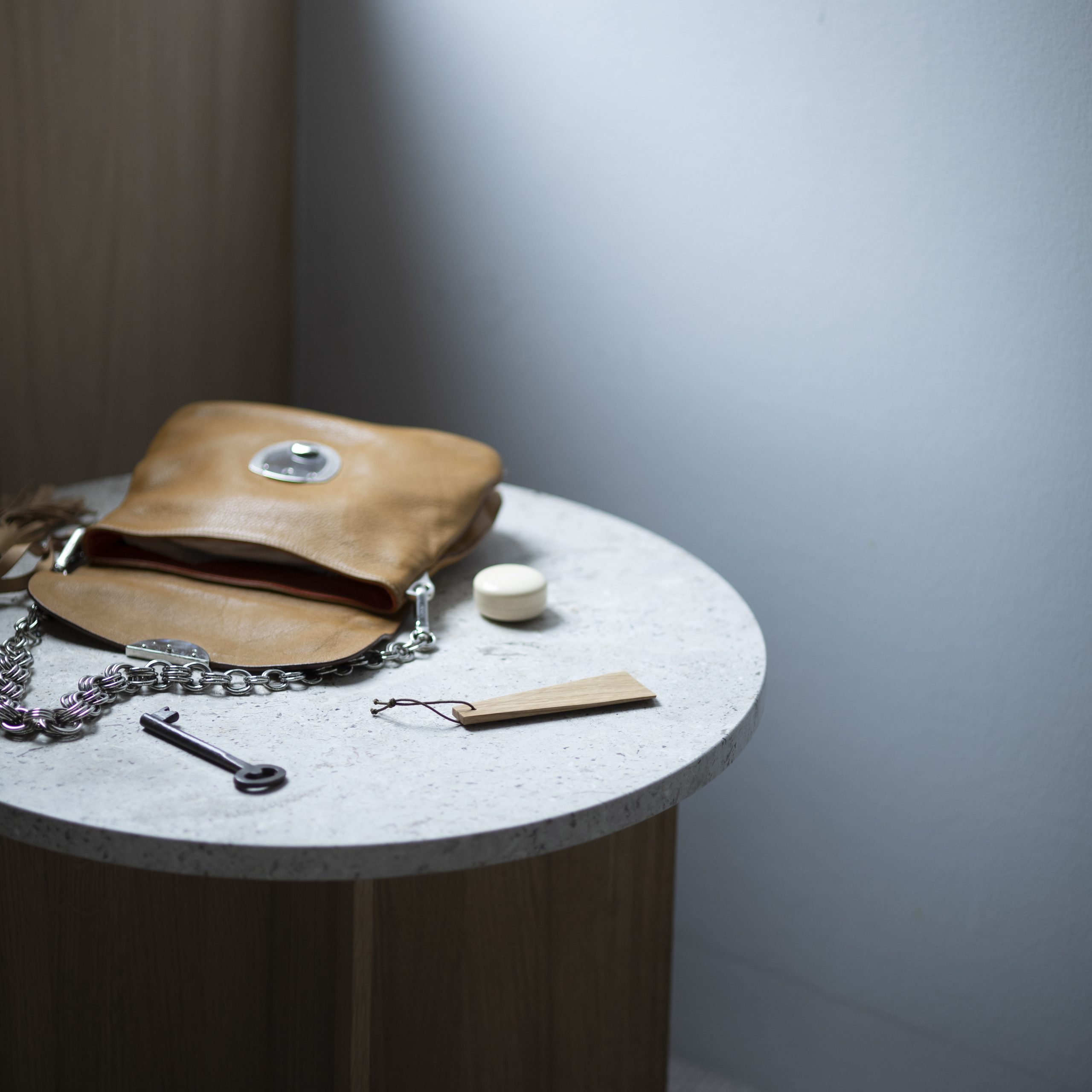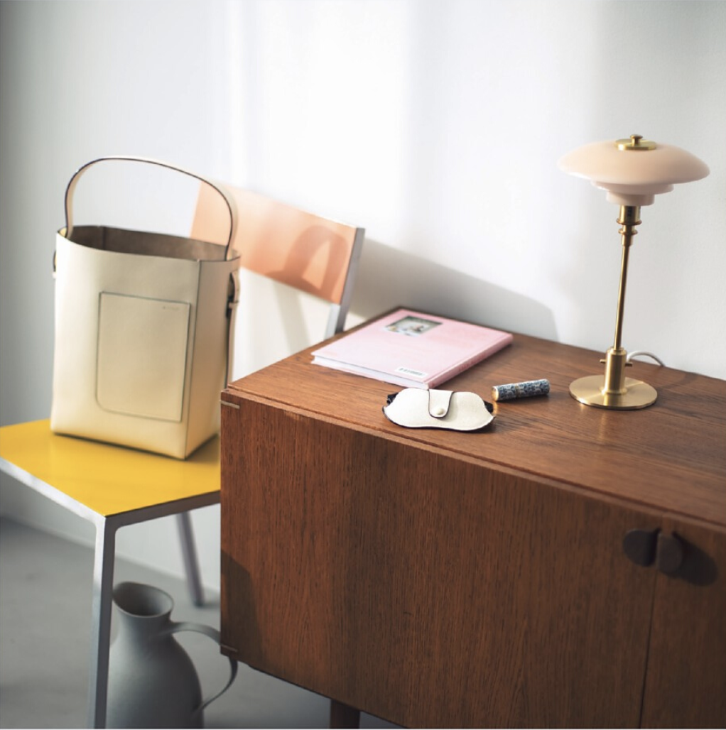 〈持ち歩くためのメガネは、革の色の美しいケースに入れて。〉