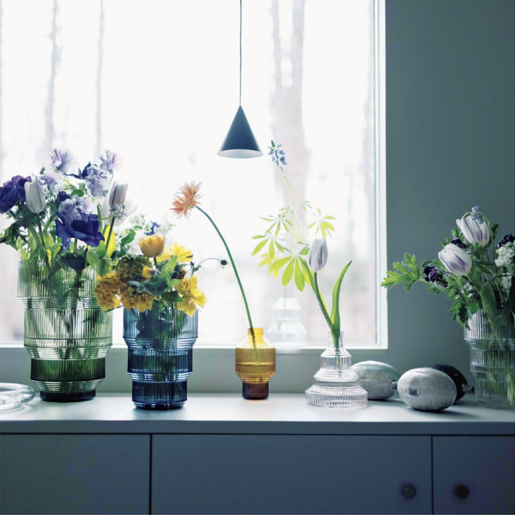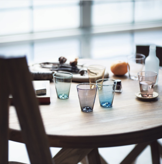 〈水をおいしく見せる、透明感のあるカラーグラス。〉