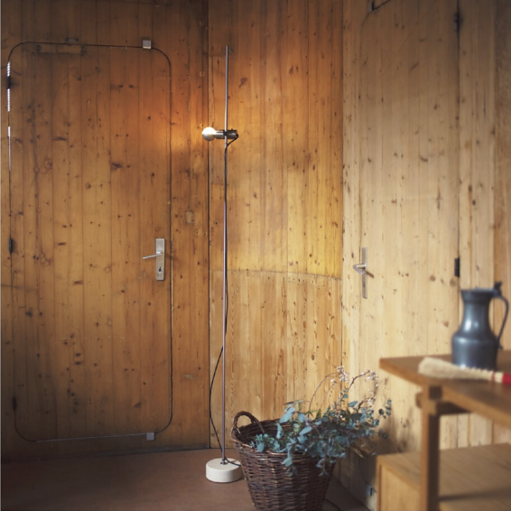 〈天井に反射させて、光を拡散するフロアランプ。〉